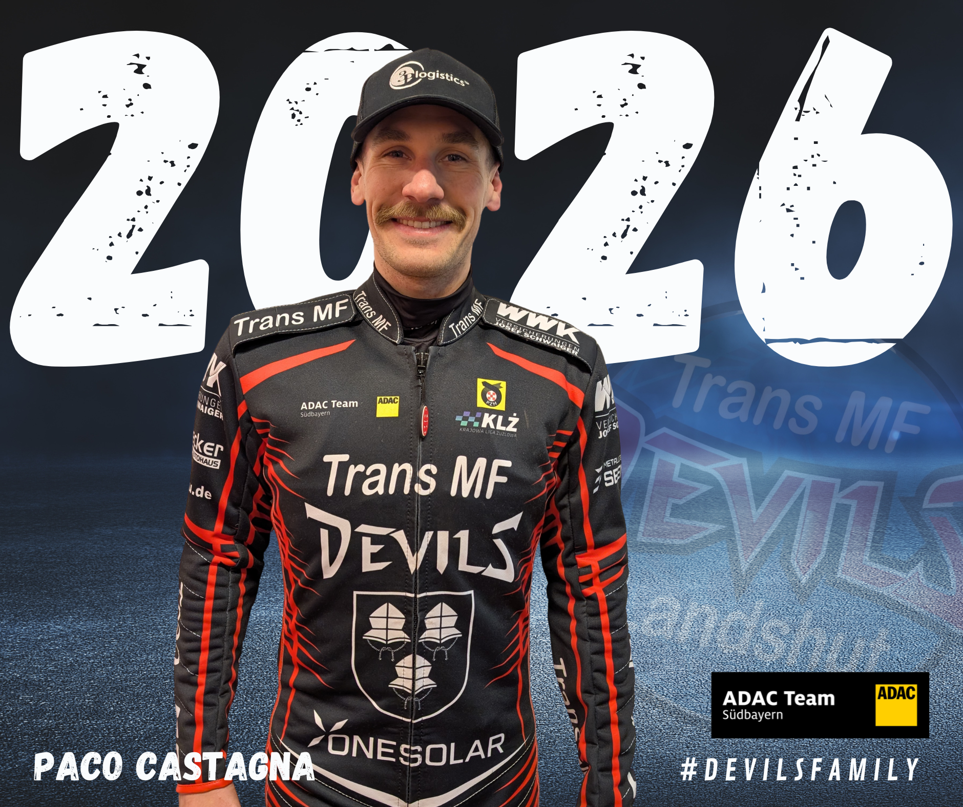 Die Mannschaft der Trans MF Landshut Devils für die Saison 2026 in der polnischen Landesliga ist nun nahebei komplett. Nachdem die Niederbayern in den vergangenen Wochen bereits zahlreiche Vertragsverlängerungen verkünden konnten, hat nun auch der amtierende Italienische Meister Michele „Paco“ Castagna erneut bei den Devils unterschrieben.