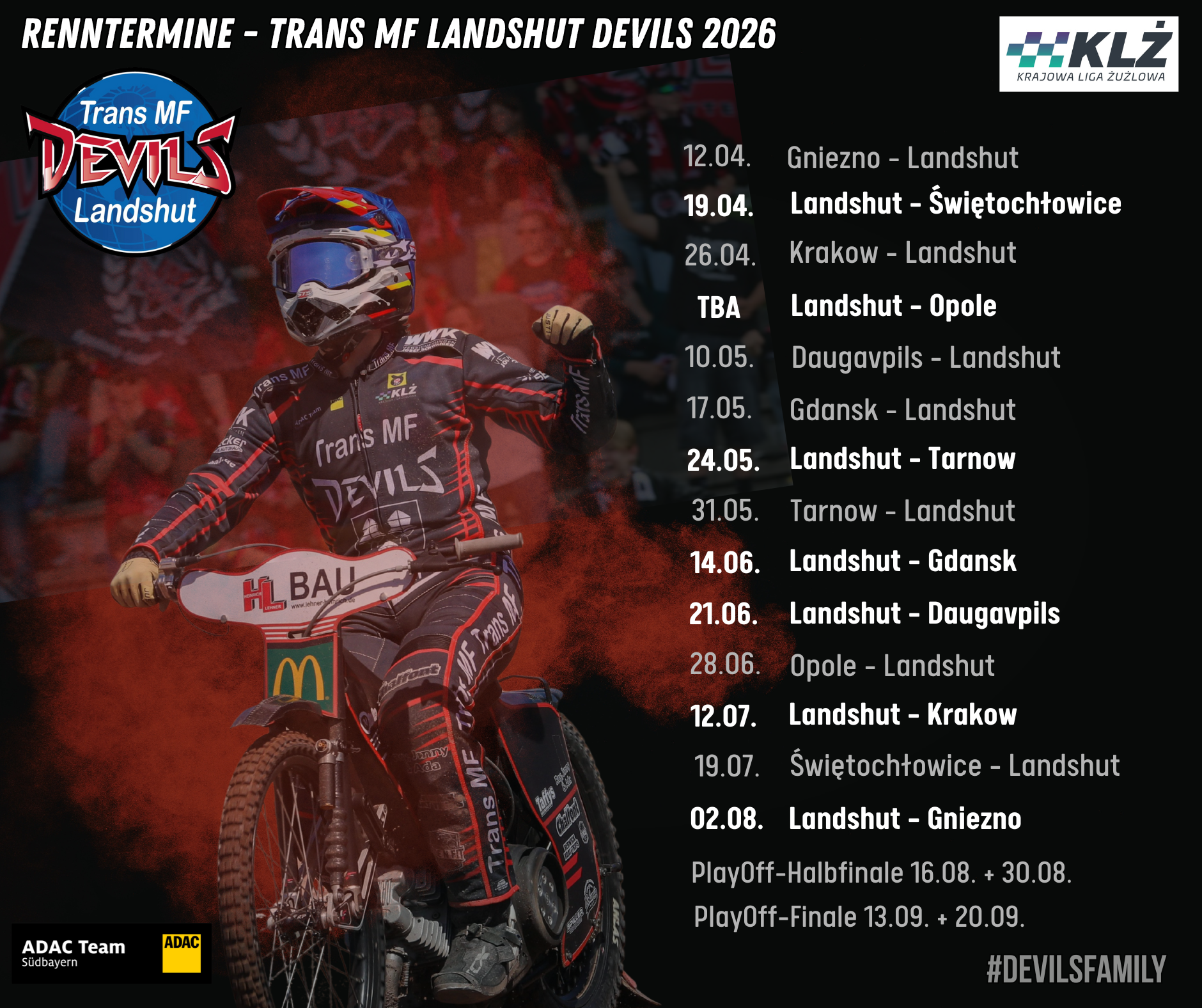 Devils-Fans, schnallt euch an! Die Renntermine für die Saison 2026 in der Krajowa Liga Żużlowa sind nun offiziell !