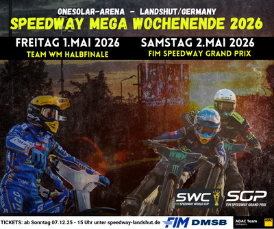 Diese Nachricht wird die Herzen aller Landshuter und deutschen Speedwayfans höher schlagen lassen: Anfang Mai richtet der ACL neben dem Grand Prix auch das Team WM-Halbfinale aus. Dass Landshut durch die Ausrichtung des FIM Speedway Grand Prix von Deutschland im kommenden Jahr erneut der große Schauplatz für die Speedwaywelt wird, sollte für viele Fans keine Überraschung mehr sein. Die Nachricht, dass einen Tag zuvor das Speedway World Cup-Halbfinale mit der deutschen Nationalmannschaft in der OneSolar-Arena stattfindet, wird hingegen wie ein Paukenschlag wirken. Soeben wurde der offizielle WM-Rennkalender 2026 veröffentlicht und damit ist das Landshuter Megaspektakel nun offiziell: