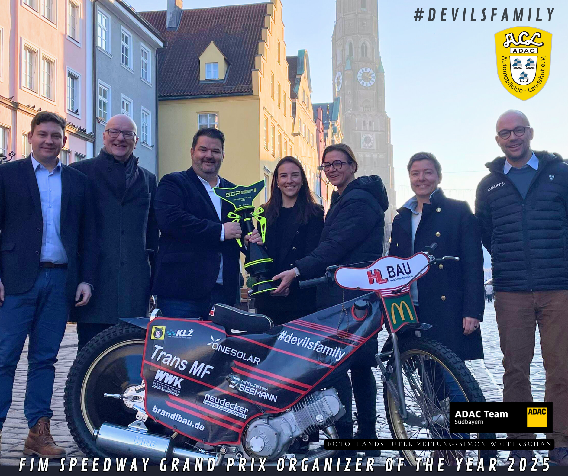 Laura Manciet, Direktorin der FIM Speedway Grand Prix Serie, reiste am Donnerstag eigens aus Frankreich an, um die Trophäe im Landshuter Rathaus zu übergeben. Im Beisein von Oberbürgermeister Alexander Putz, dem zweiten Bürgermeister Thomas Haslinger sowie Klaus Peißinger und Sabrina Högl (Stadt Landshut) nahmen der 1. Vorsitzende Gerald Simbeck und die 2. Vorsitzende Kerstin Rudolph die Auszeichnung voller Stolz entgegen.